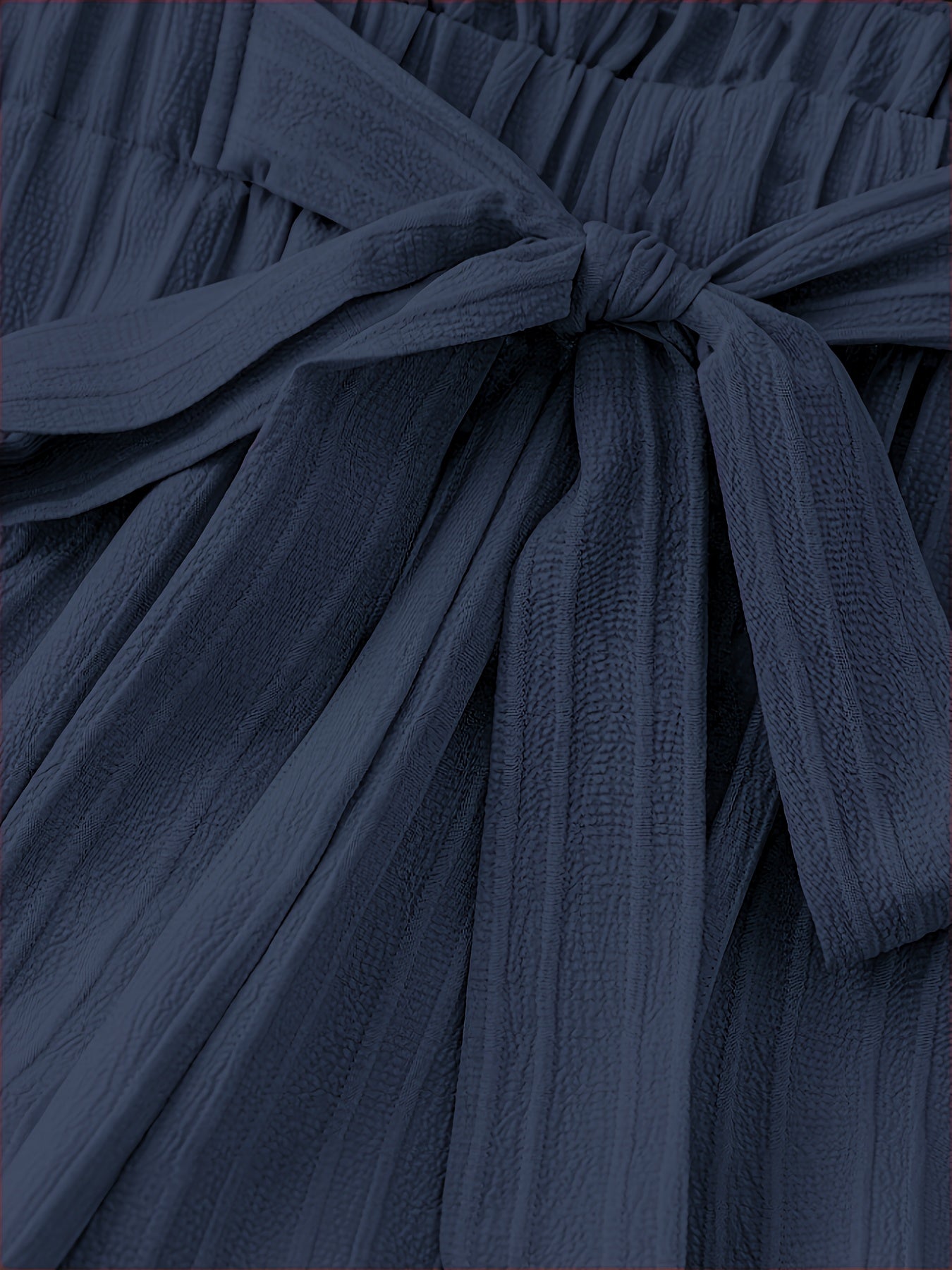 Plus Size Women's Navy Blue Straight Pants Casual Trousers with Tie Waist