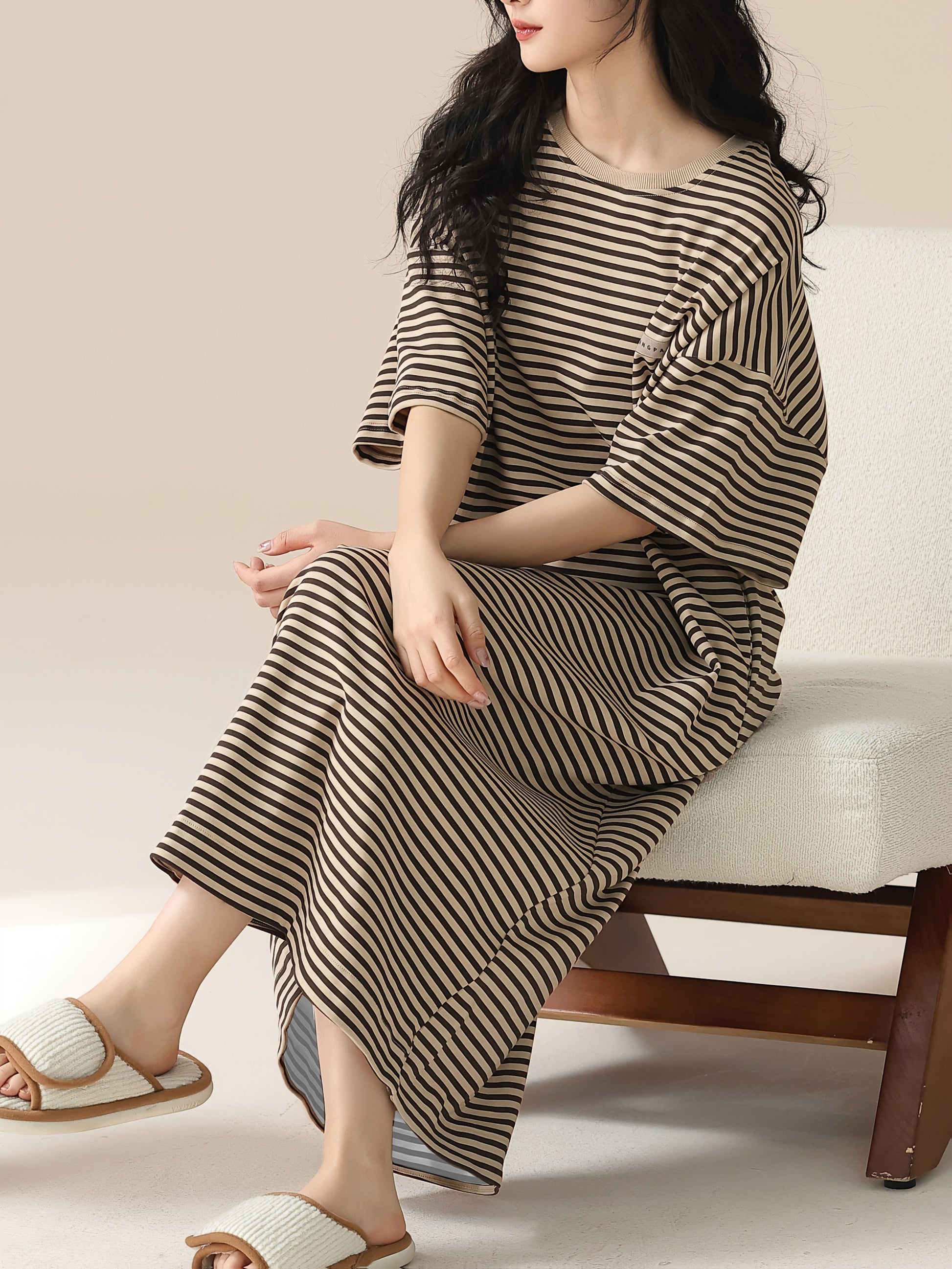 Plus Size Women's Sleep Dress Polyester Striped Long Lounge Wear