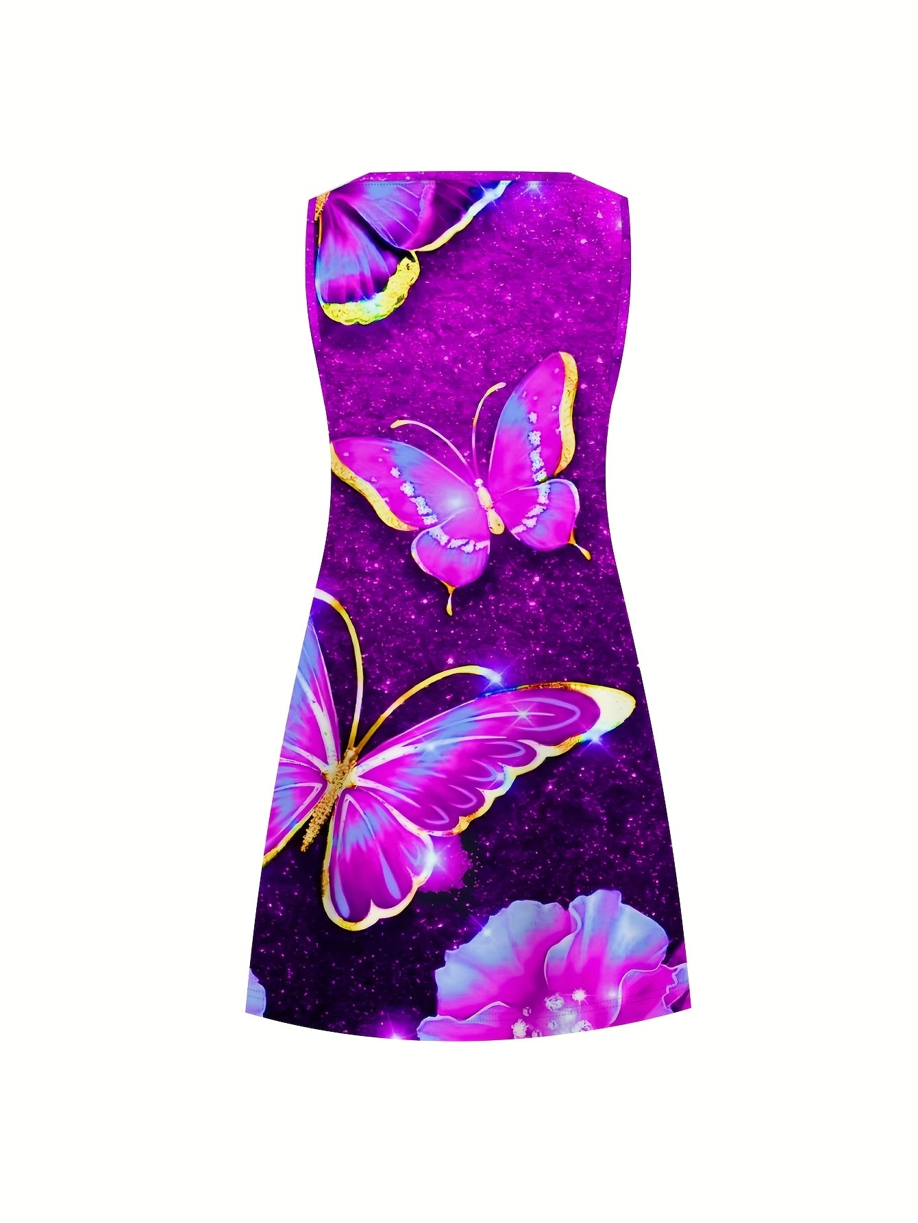 Plus Size Women's Sleeveless Sports Dress Vibrant Purple Butterfly Print