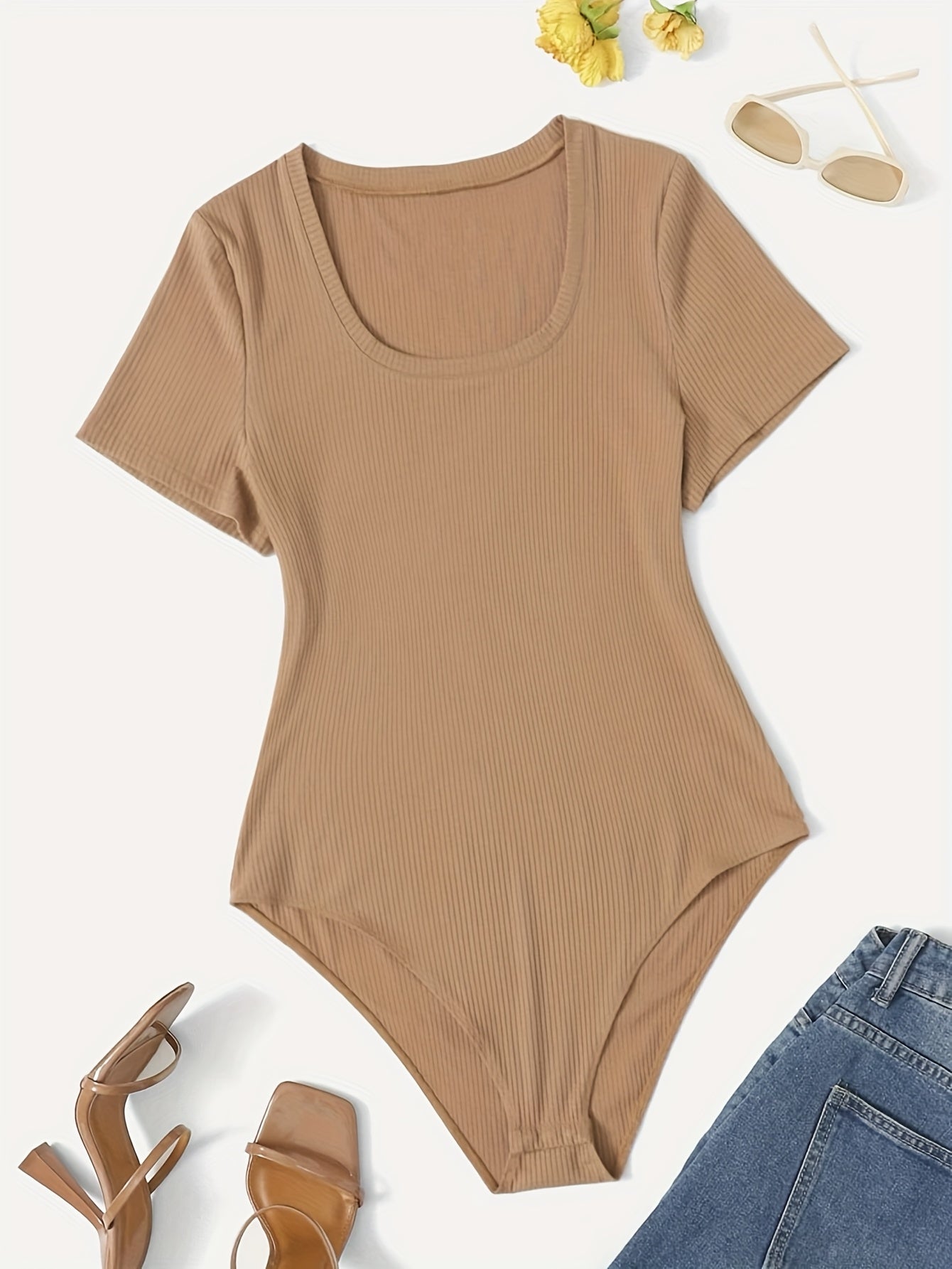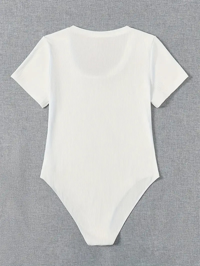 Plus Size Women's Stretchy Casual Jumpsuit White Short Sleeve All-Season