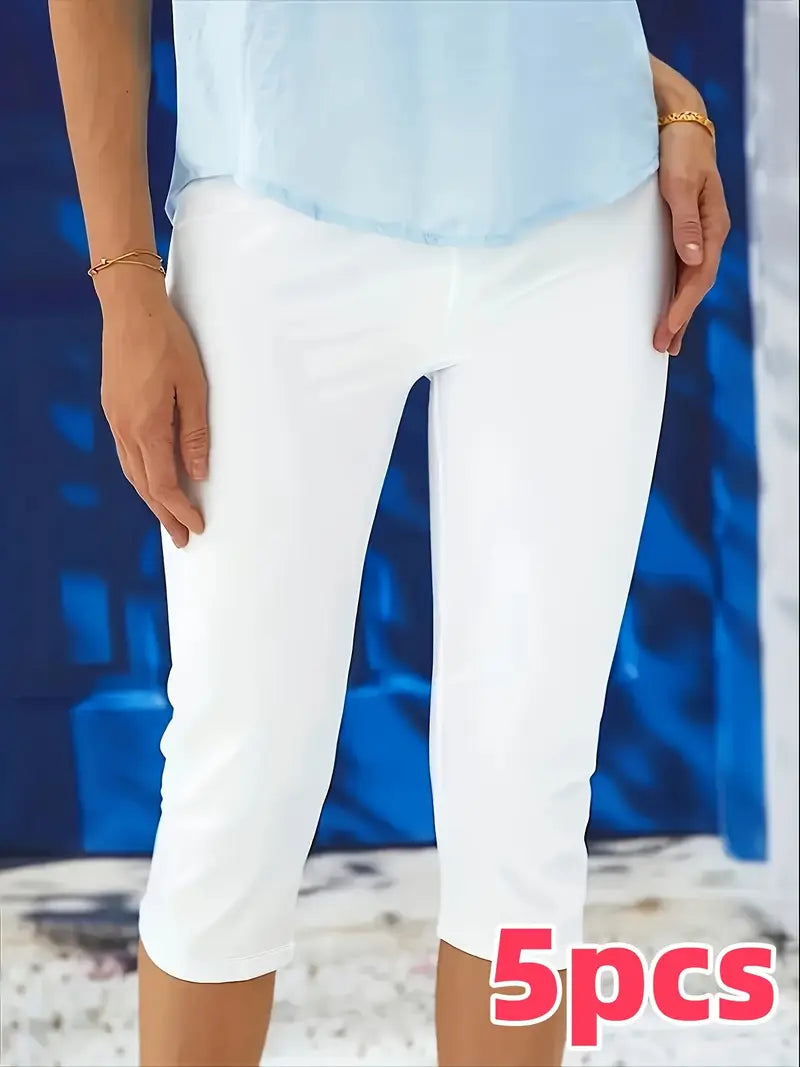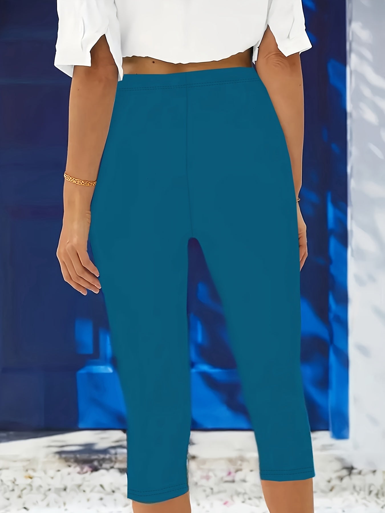 Plus Size Women's Stretchy High-Waisted Capri Leggings Solid Color Casual Pants
