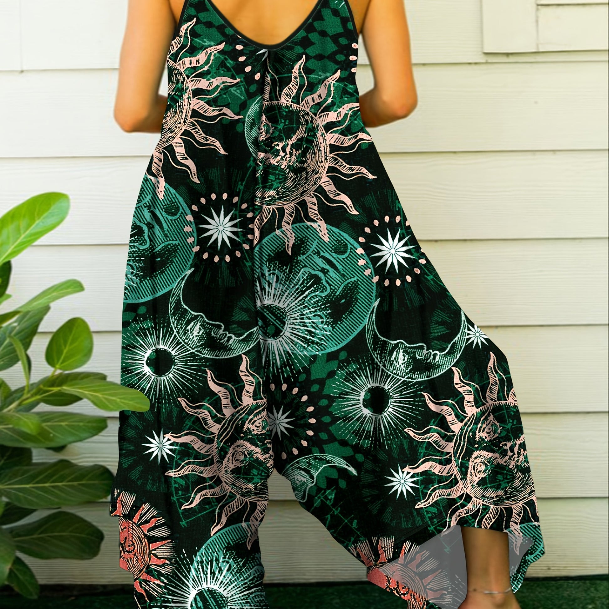 Plus Size Women's Tie-Dye Sleeveless Jumpsuit with Floral Star Print