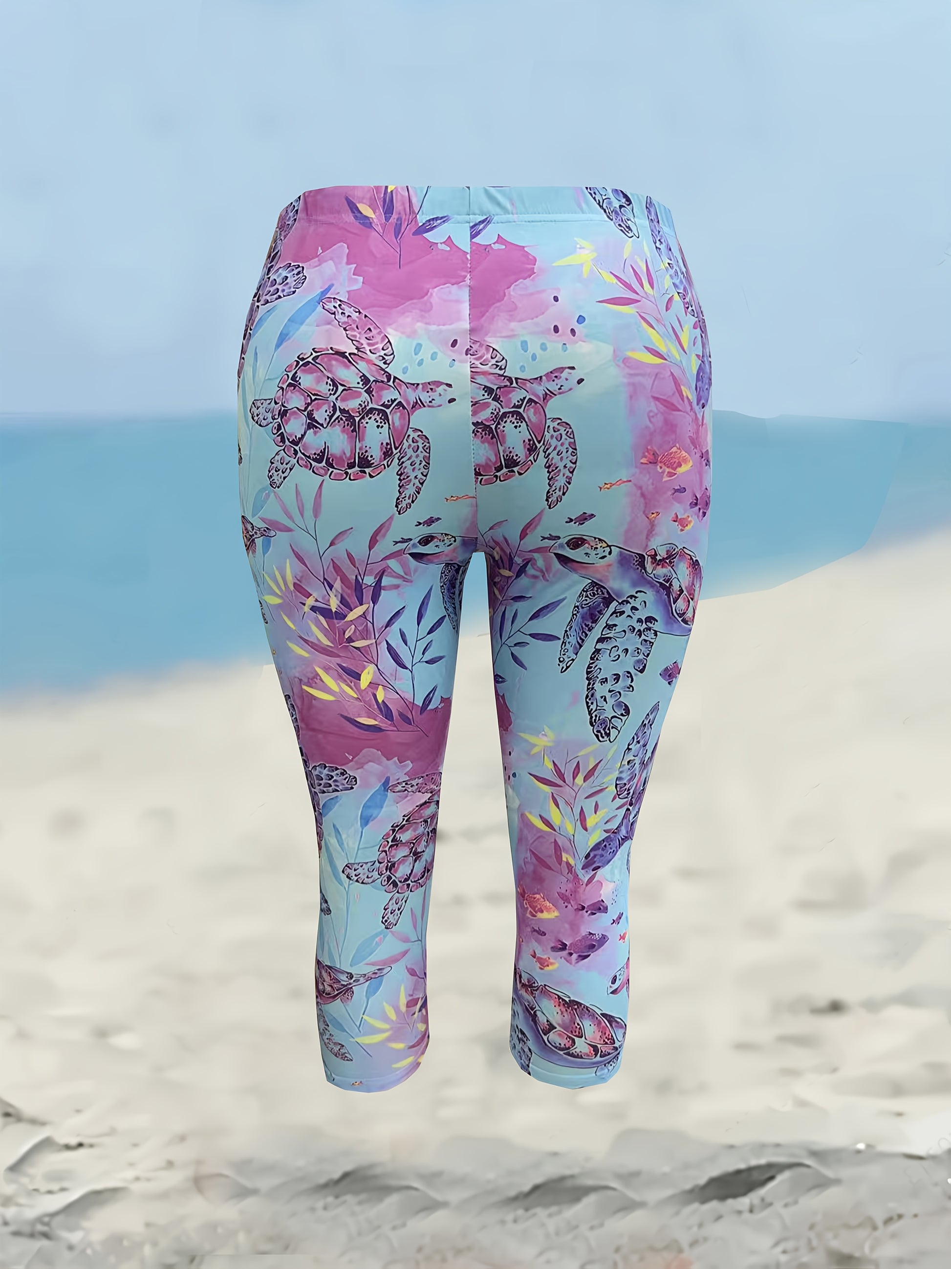 Plus Size Women's Turtle Print Leggings with Vibrant Beach Design