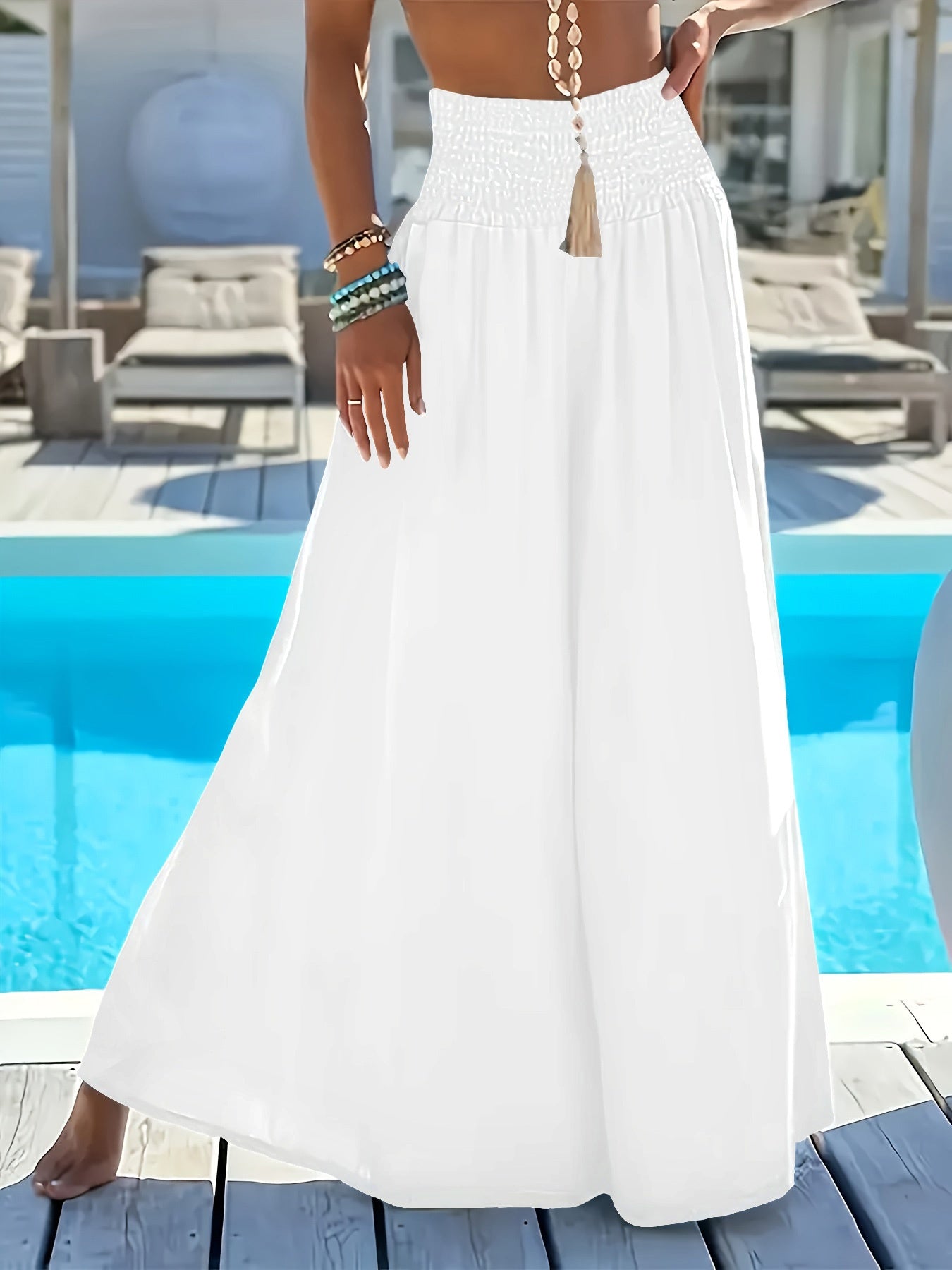 Plus Size Women's Wide Leg Pants Non-Stretch Solid Color High Waist