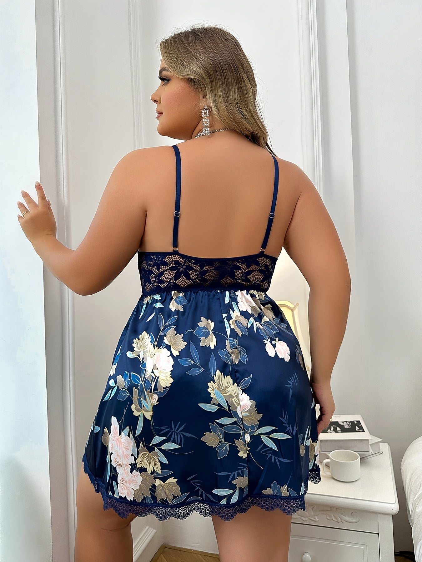 Plus Size Womens Sleepwear Set Spliced Print Nightgown and Thong Panty