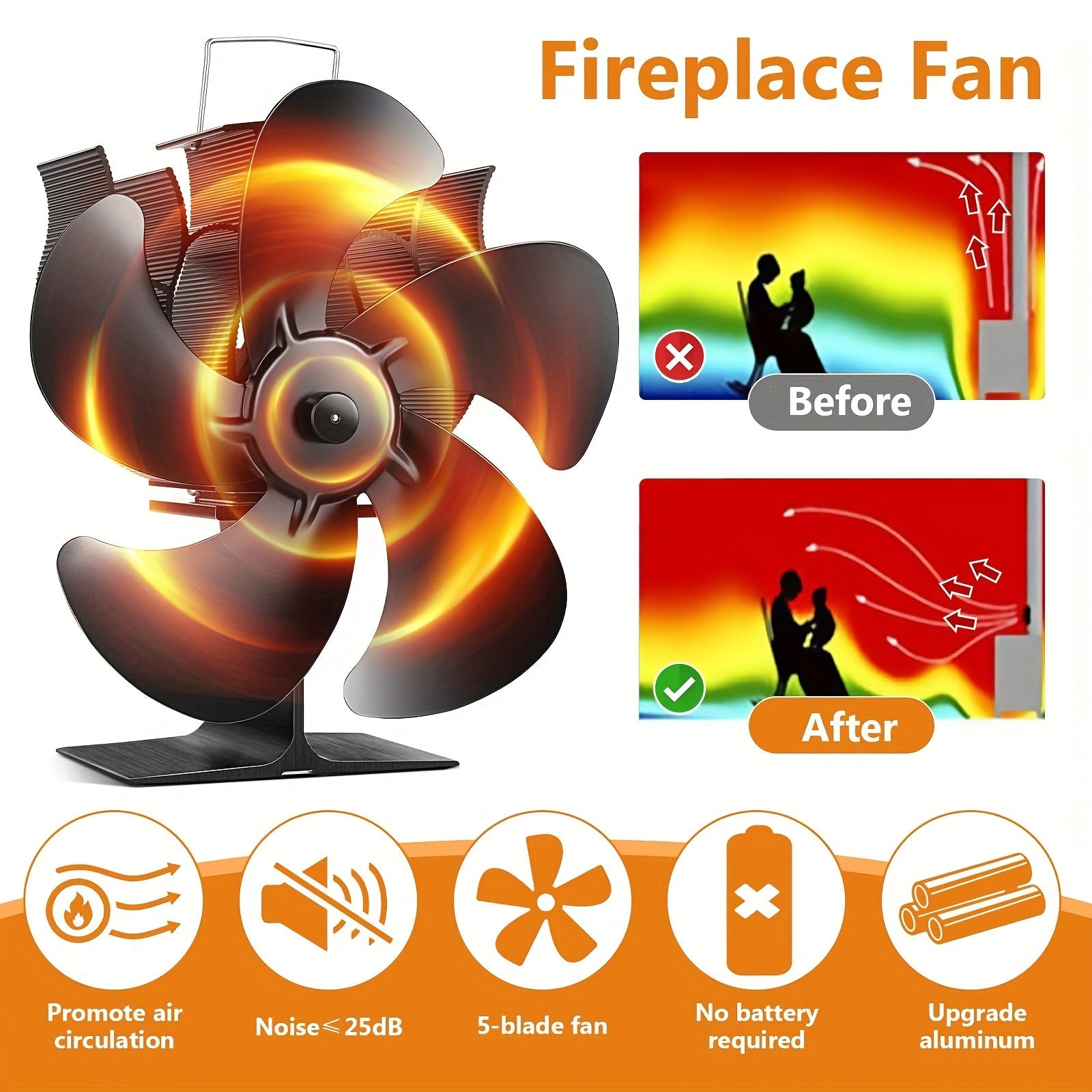 Portable 5-Blade Wood Stove Fan Heat Powered No Electricity Heating Cooling Gift