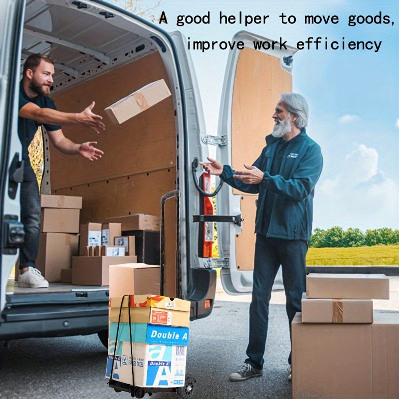 Portable Trolley with Aluminium Alloy Tie Rod, 2 Elastic Ropes, Folding Telescopic Cargo Cart, 2 Wheels, Black