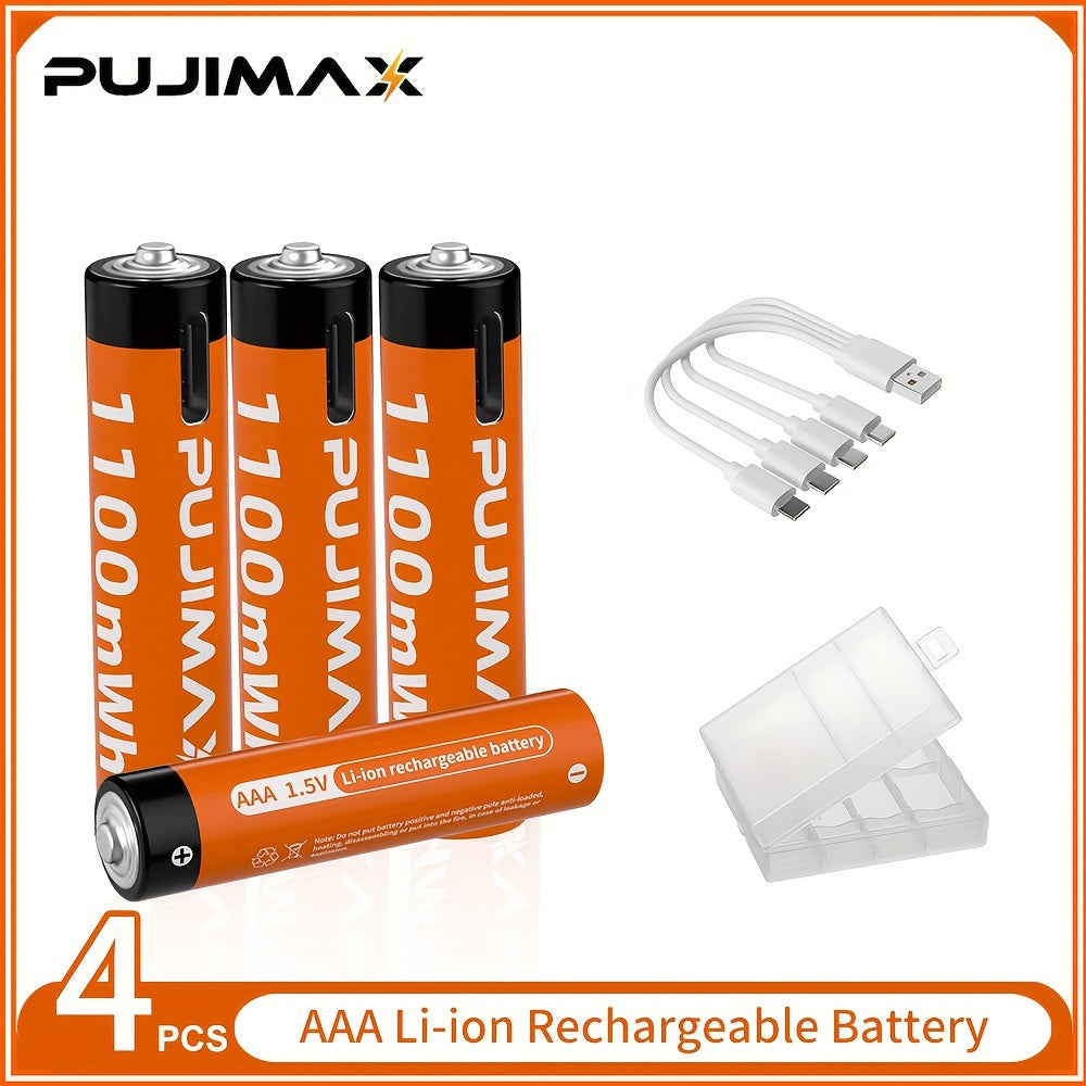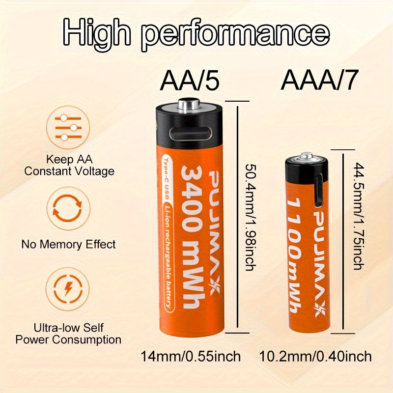 Rechargeable Lithium AA and AAA Batteries with Type-C Charging Port 3400mWh and 1100mWh