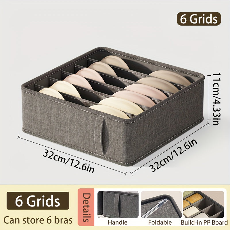 Gray Cationic Sock Storage Box with 6 7 or 20 Compartments Foldable Organizers for Underwear Bras and Socks