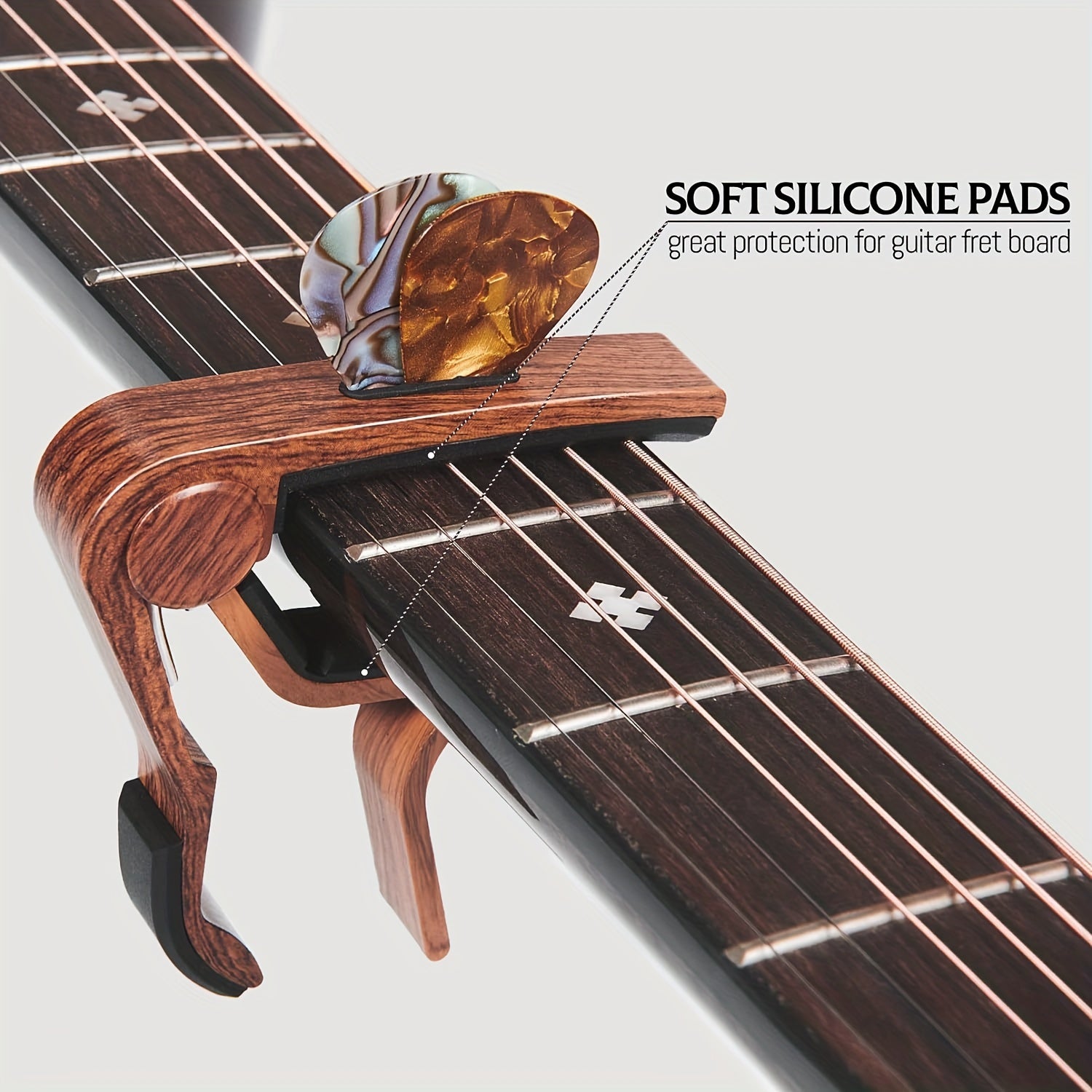 Rosewood Guitar Capo with Pick Holder for Acoustic Electric Instruments Black Brown