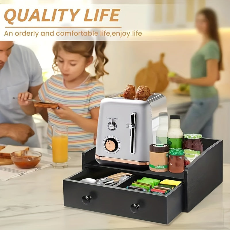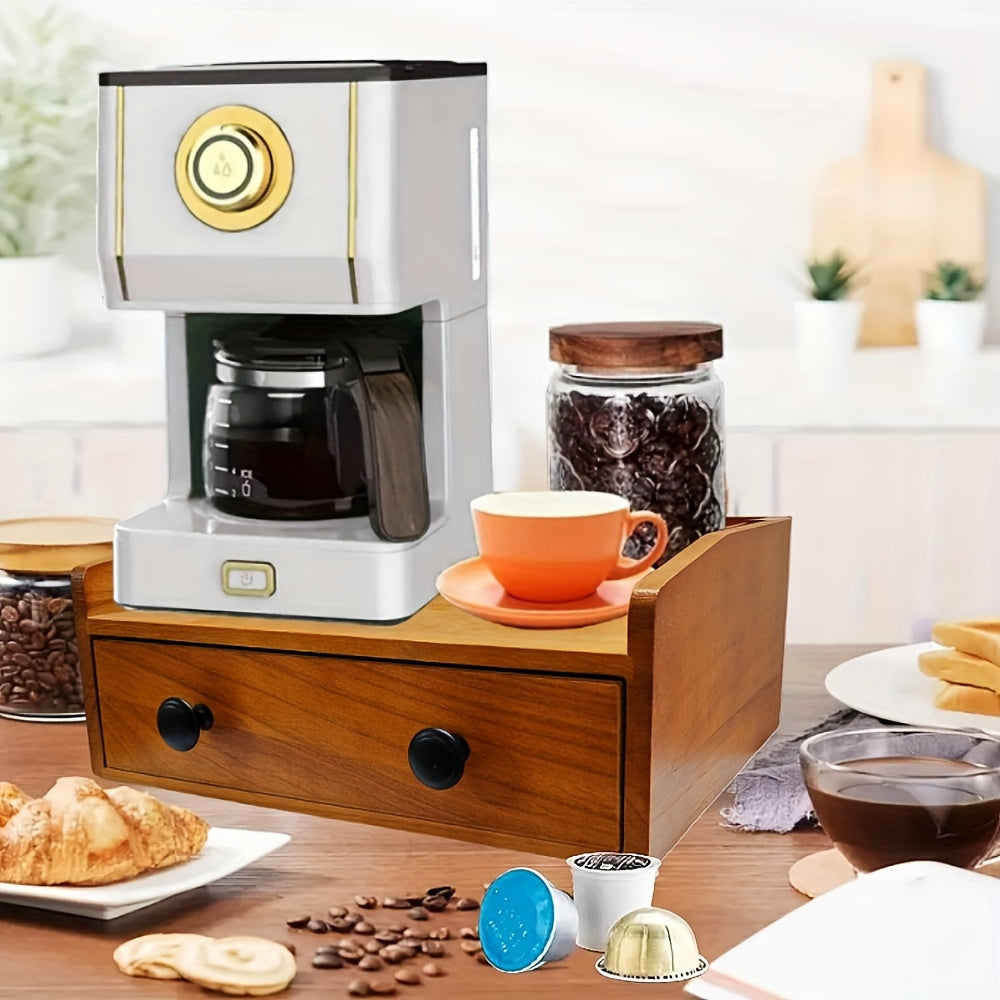 Rustic Wood Coffee Station Organizer with Drawer and K Cup Holder