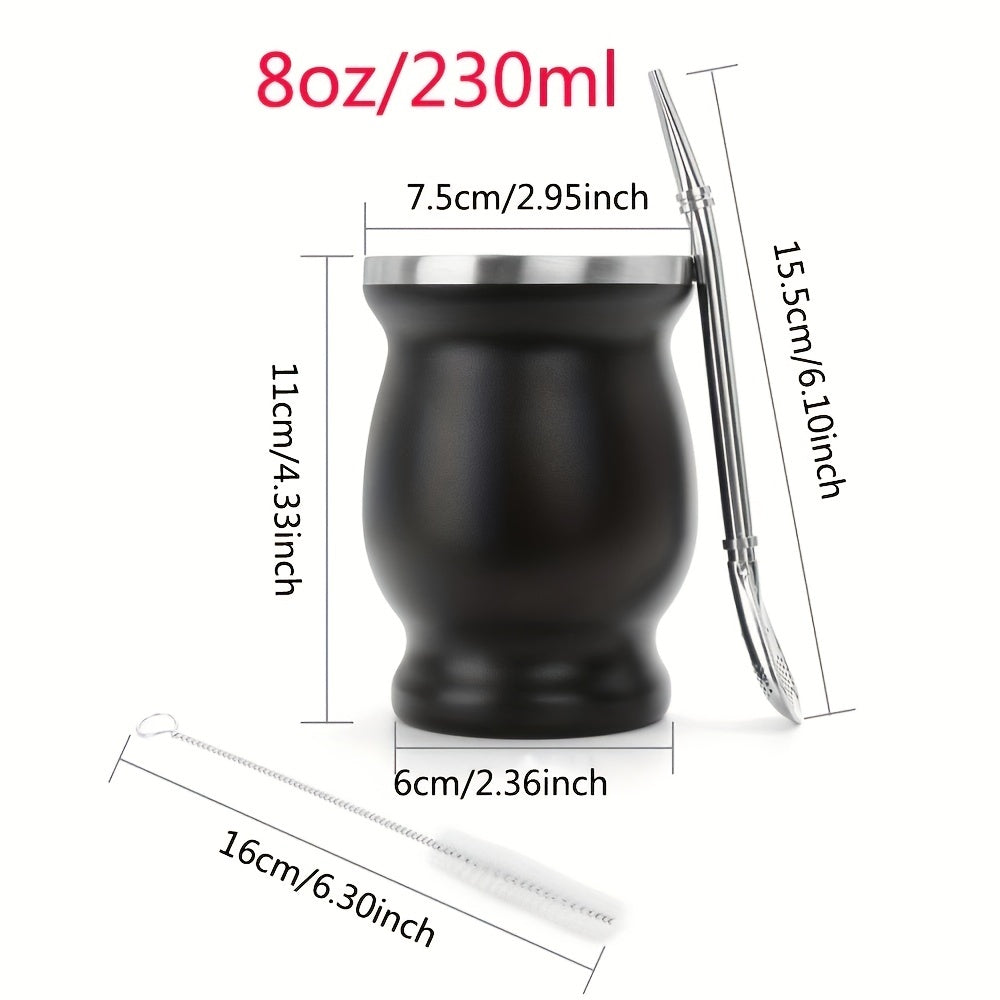 8oz Stainless Steel Yerba Mate Set with Bombilla Straw and Brush for Gifting