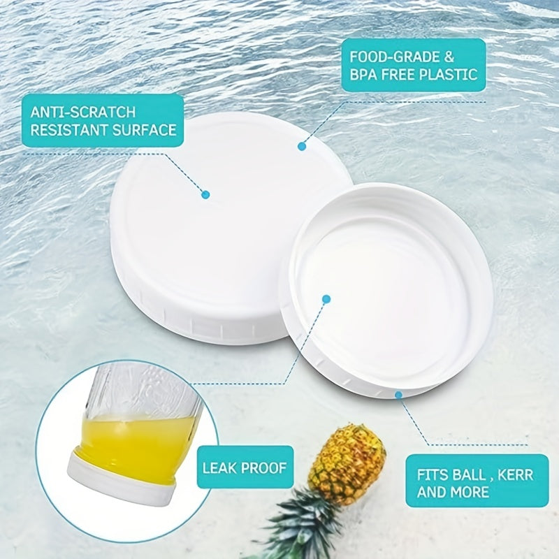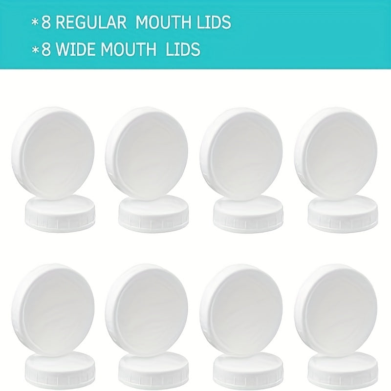 Set of 16 White Plastic Mason Jar Lids Leak-Proof Caps for Canning and Storage