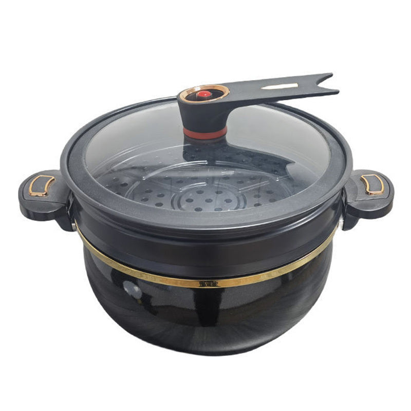 Set of 3 Ceramic Soup Pots with Non-Stick Cast Iron, Steamer Insert, and Spoon