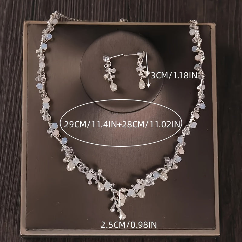 Set of 3 Bridal Jewelry Pieces Rhinestone Butterfly Tiara Faux Pearl Floral Headband Necklace Earrings