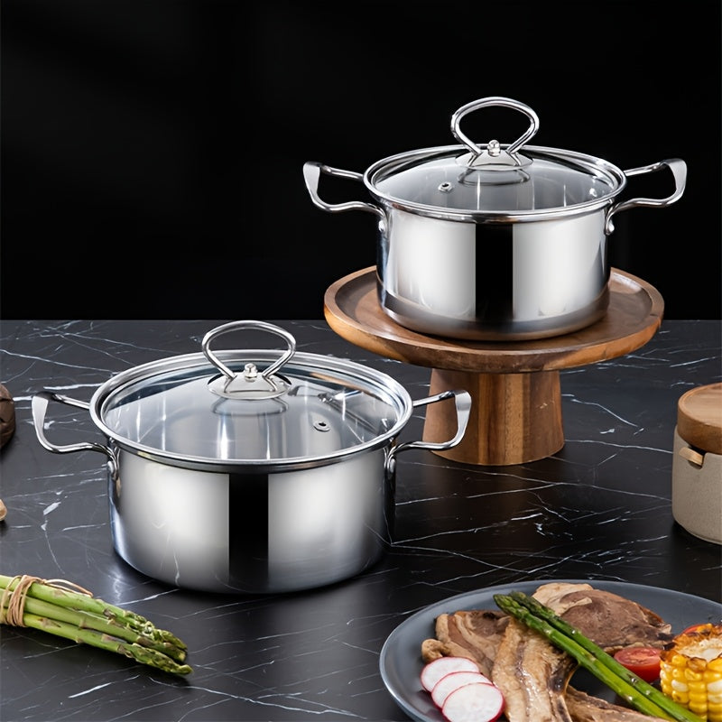 Set of 5 Stainless Steel Stock Pots with Lids, Double Handles, Large Capacity