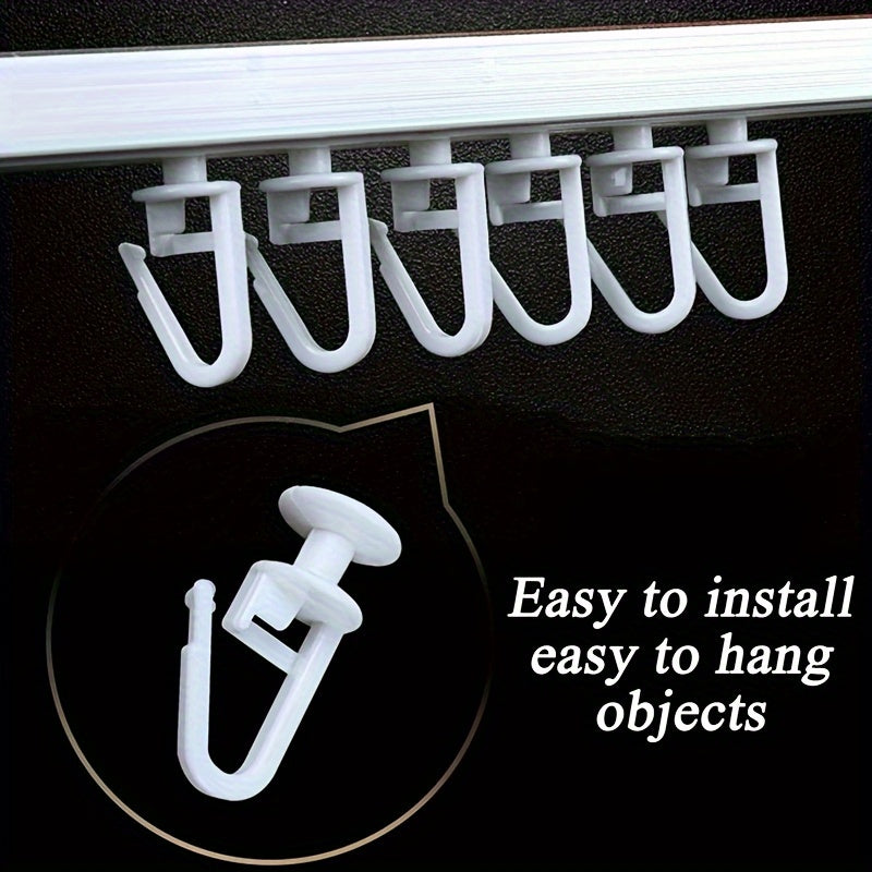 Set of 50 White Plastic Hooks with Adhesive Glide Rollers for Window Treatment Hardware