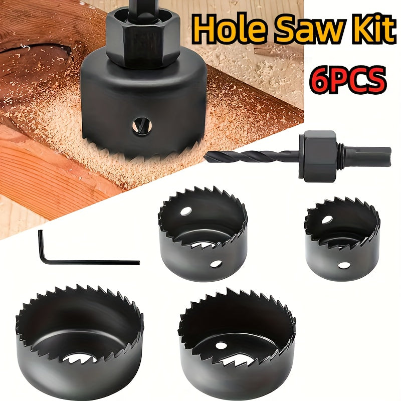 Set of 6 or 11 Steel Hole Saws with Mandrel for Wood Plastic PVC Drywall