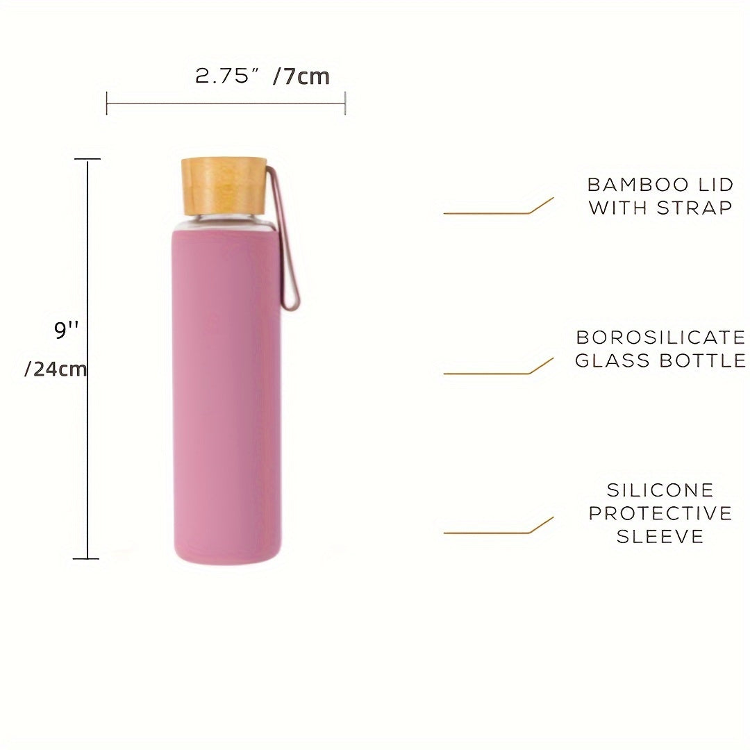 Glass Water Bottle with Silicone Sleeve and Strap Dishwasher Safe