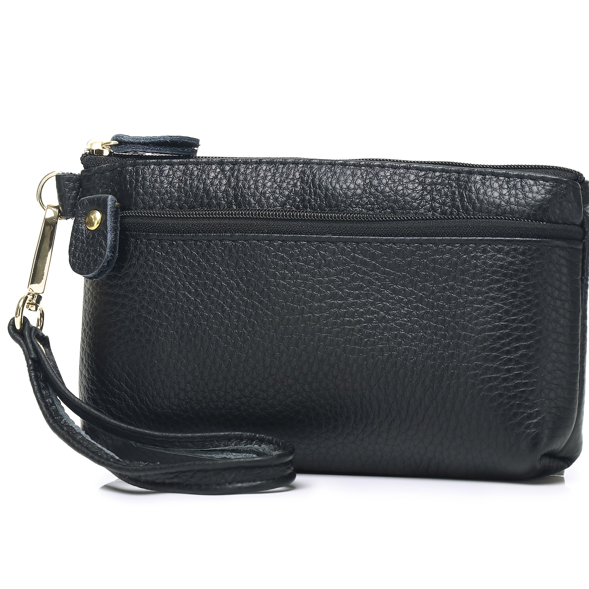 Small Genuine Leather Women's Handbag with Mini Coin Purse and Key Holder Black