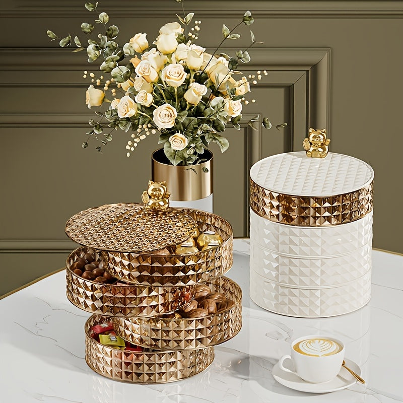 Divided Snack Tray with Lid Lucky Cat Fruit Bowl for Party Home Decor