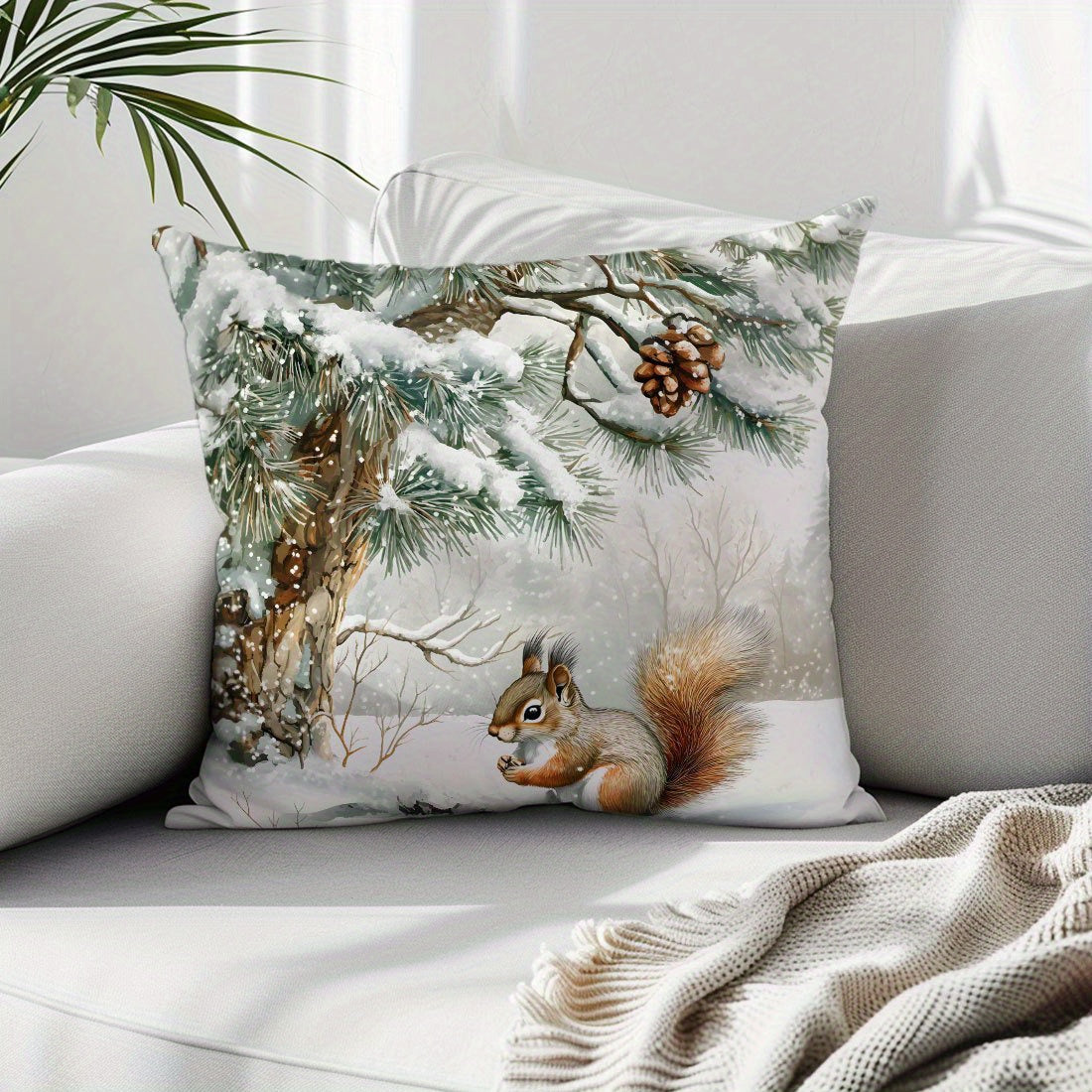 Snowy Squirrel Throw Pillow Cover Winter Scene 44.98cm Polyester Double-Sided Decor
