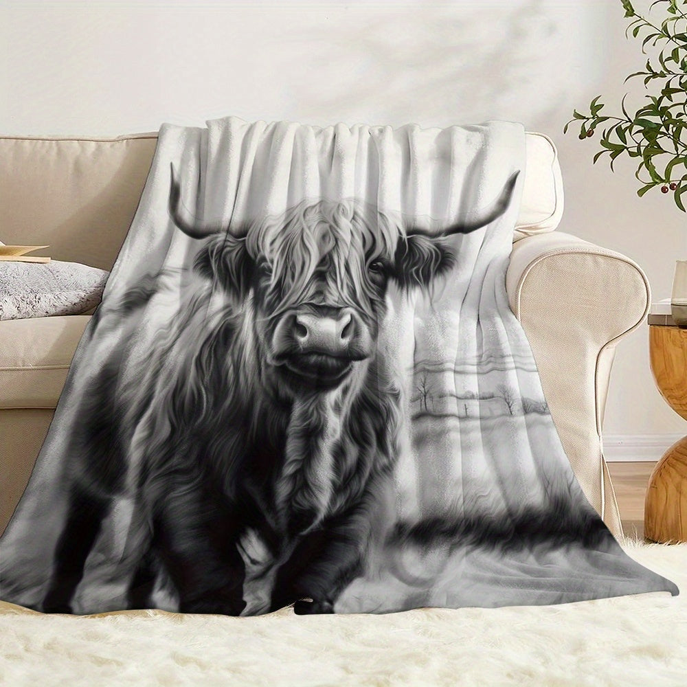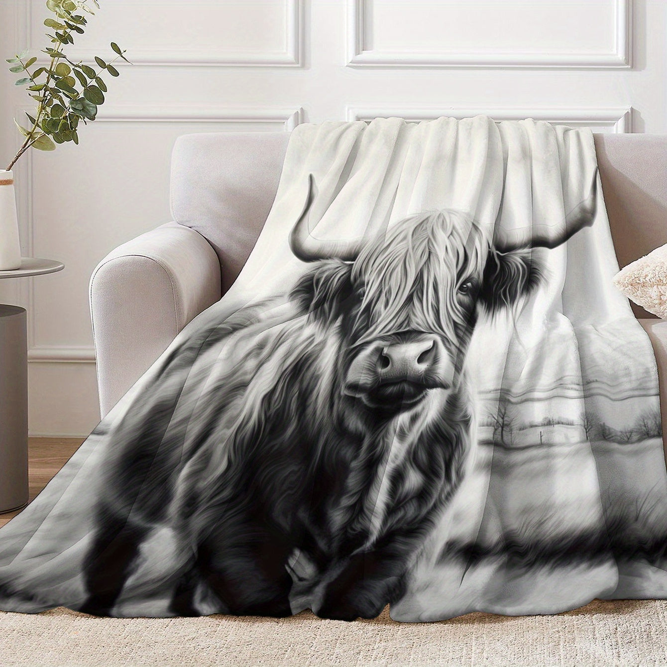 Warm Highland Cattle Print Flannel Blanket for Naps Camping Travel Home Decor