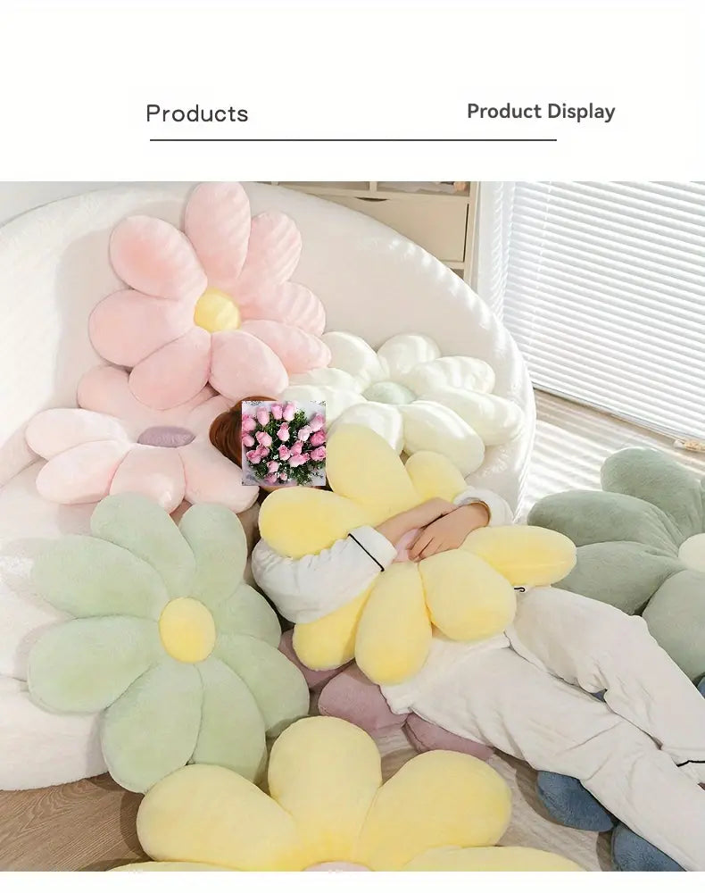 Faux Fur Flower Pillow 60cm Green Decorative Cushion for Home Office