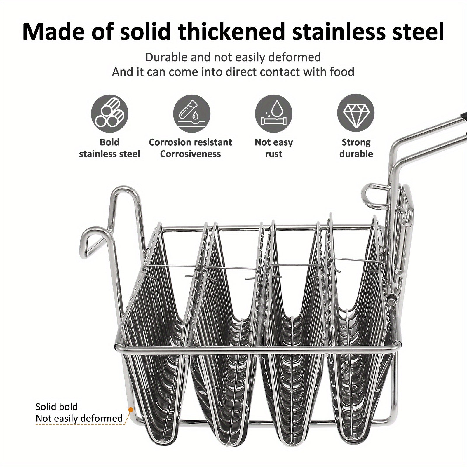Stainless Steel Taco Fryer Basket with Detachable Rubber Handle Dishwasher Safe