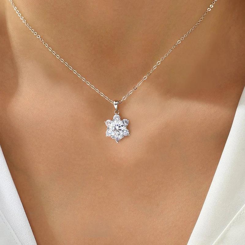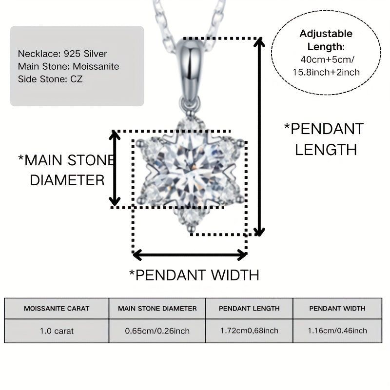Silver Necklace with Moissanite Snowflake Pendant 1 Carat Elegant Jewelry for Daily Wear