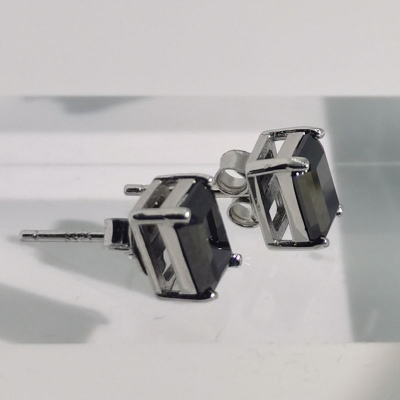 Women’s 1ct Moissanite Stud Earrings Sterling Silver Black Rectangular Jewelry