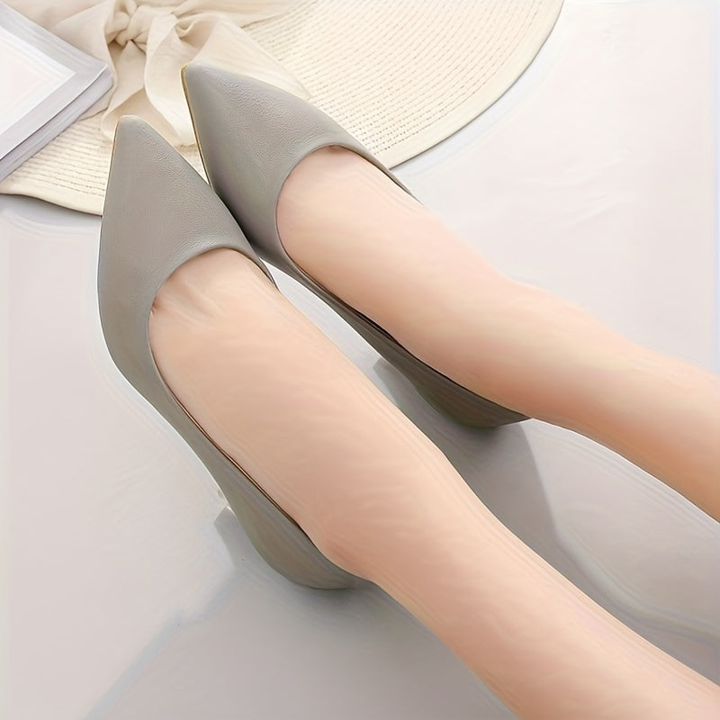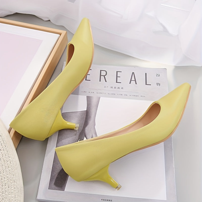 Women's Black Faux Leather Mid-Heel Pumps with Pointed Stiletto Toe and Rubber Sole
