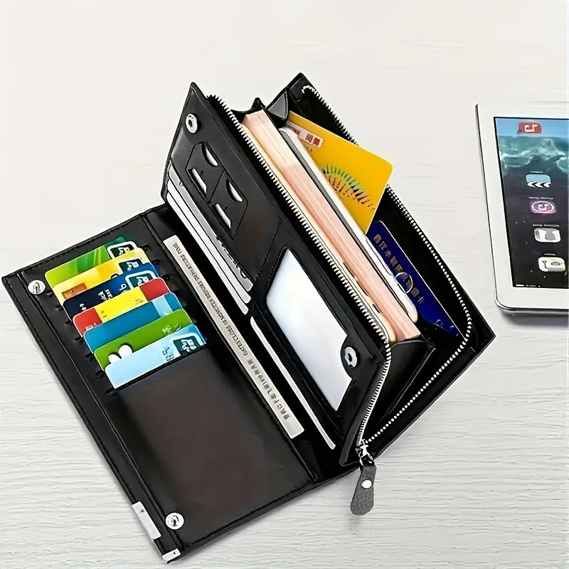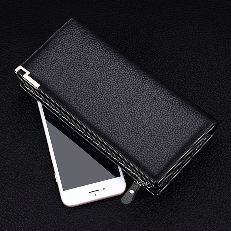 Black RFID Blocking Zipper Bifold Wallet for Men and Women with Card Slots and Detachable Pouch