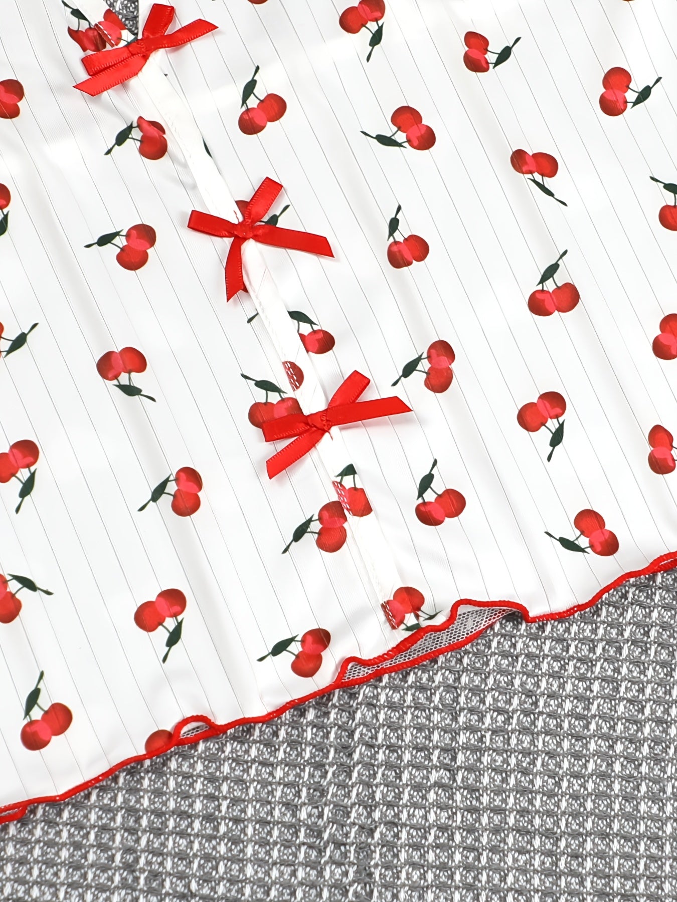 Women's Cherry Print Pajama Set with Spaghetti Straps and Long Pants