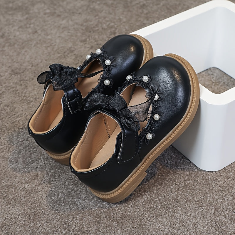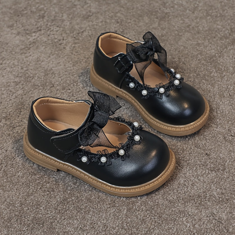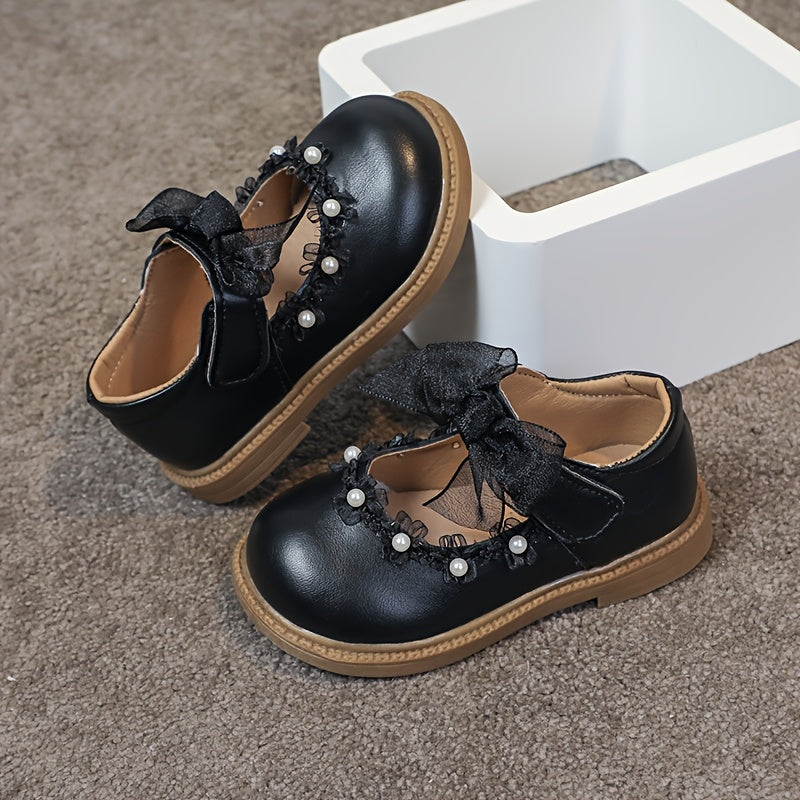 Girls' Princess Shoes with Bead Design Net Lace Bow for Parties and Daily Wear