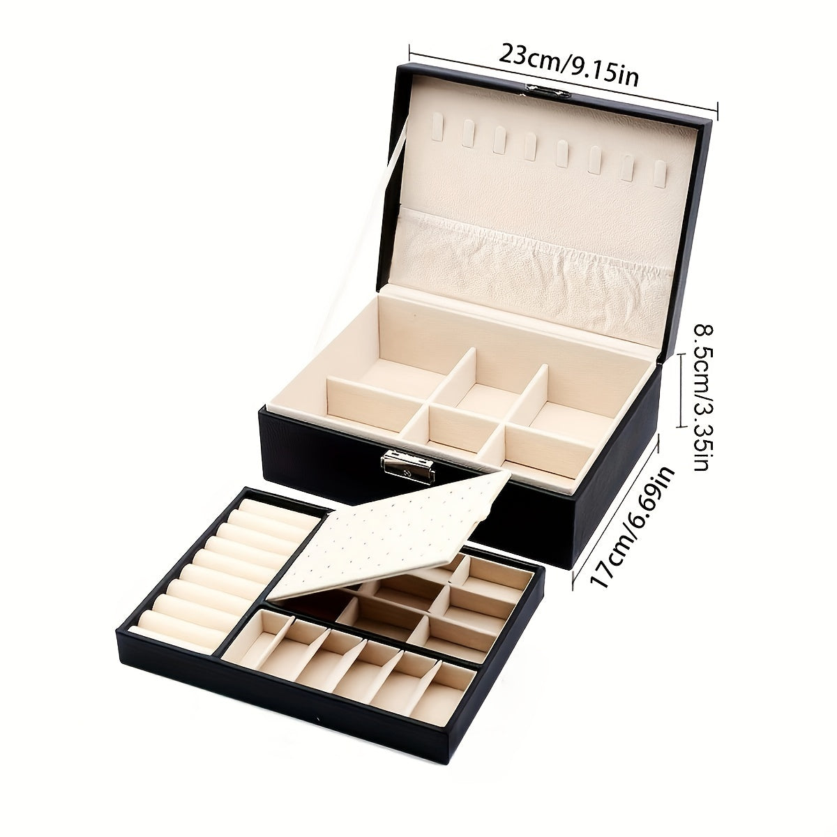 Leather Jewelry Box with Key Lock for Necklaces Earrings and Watches