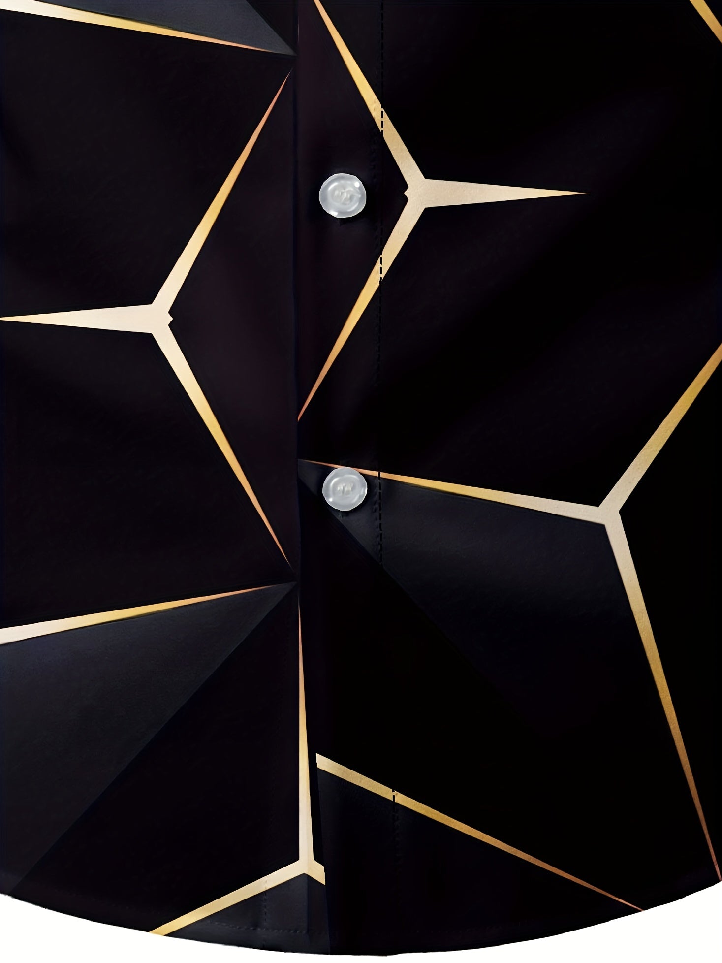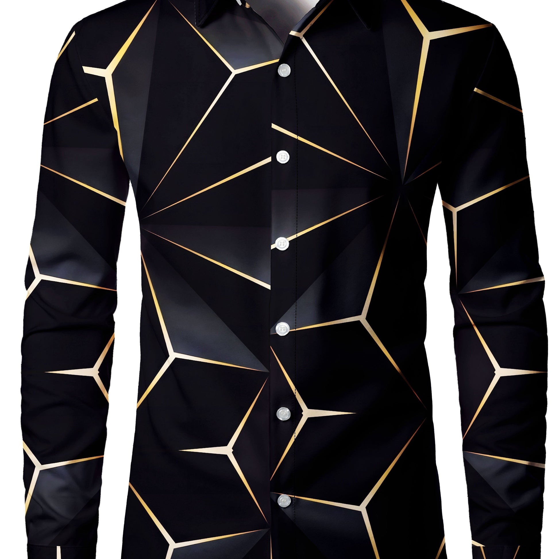 Men's Long Sleeve Casual Shirt with Lapel Collar Geometric Pattern for Spring Fall