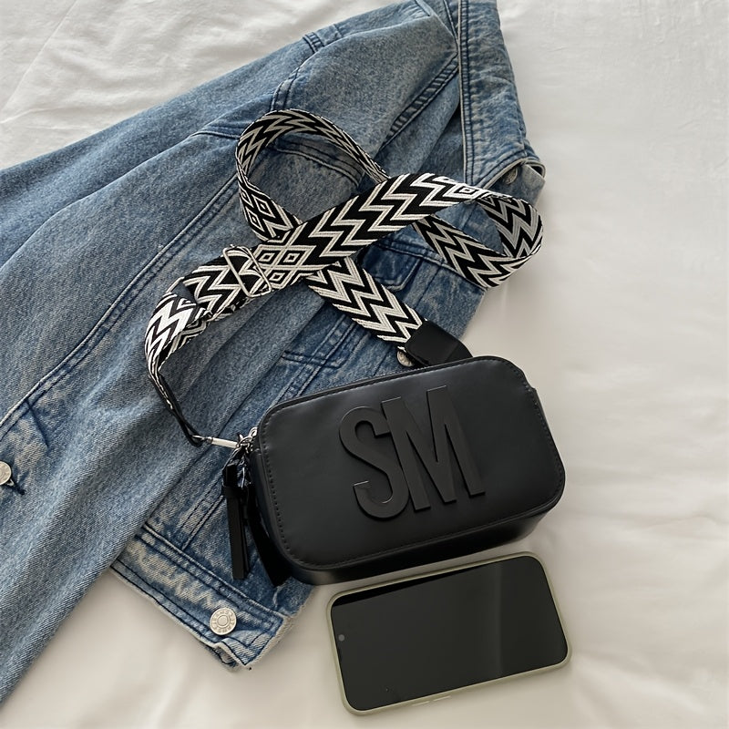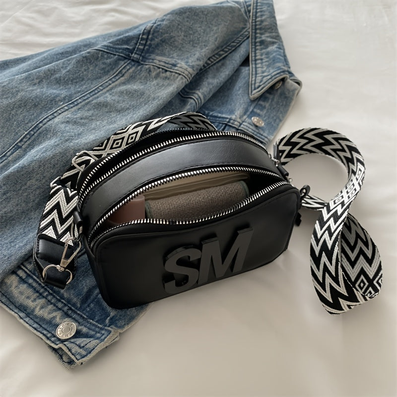 Women's Quilted Monogram Camera Bag in Black Beige Pink Khaki with Zipper Closure