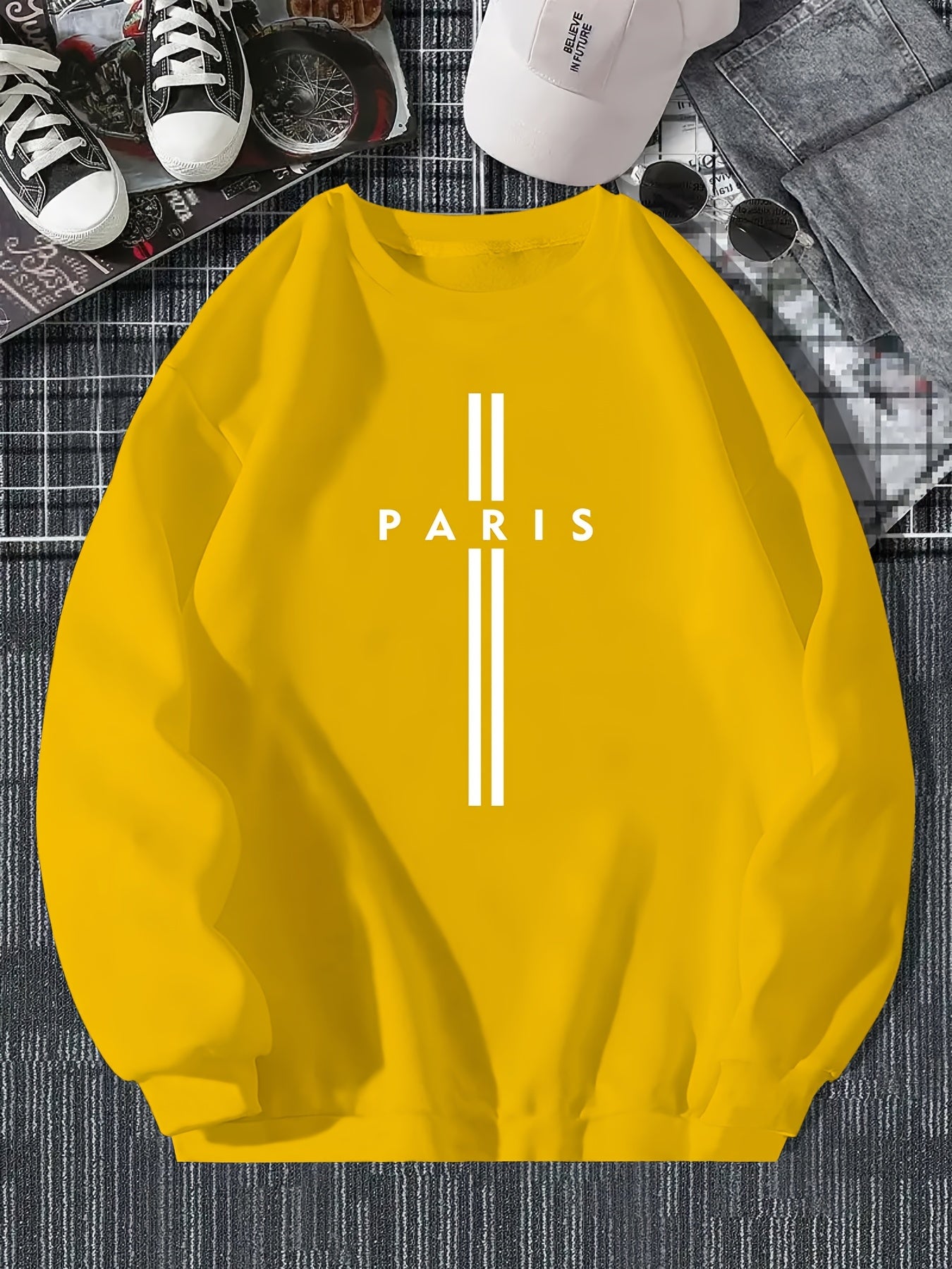Men's Polyester Crew Neck Sweatshirt with Letter Print for Outdoor Sports in Spring and Autumn