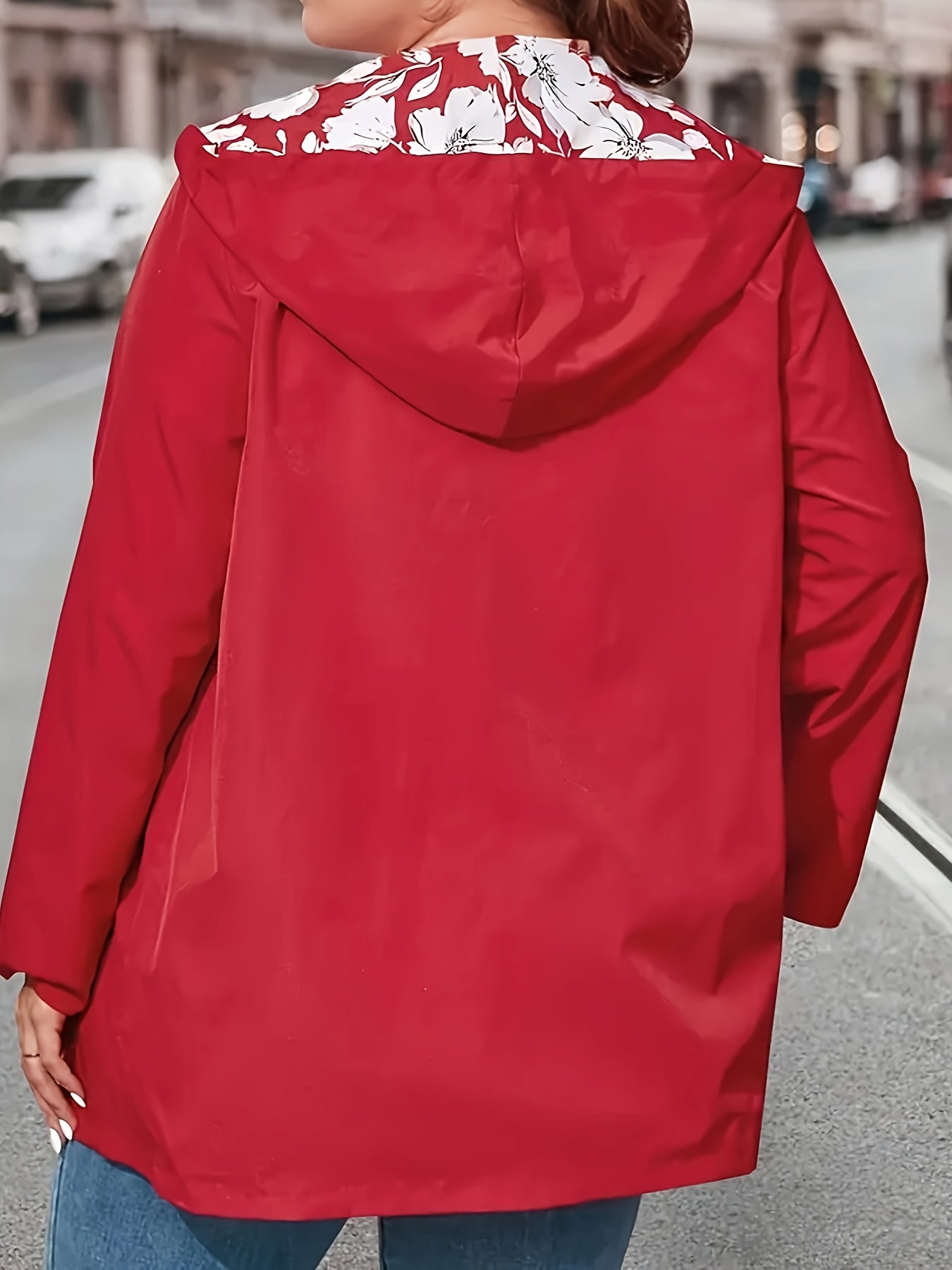Women's Reversible Hooded Jacket Windproof Machine Washable Plant Print Fall Winter