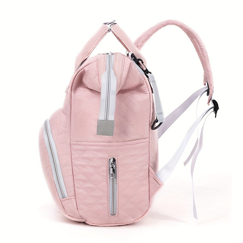 Solid Color Diaper Bag with Large Capacity and Insulated Bottle Pocket for Moms