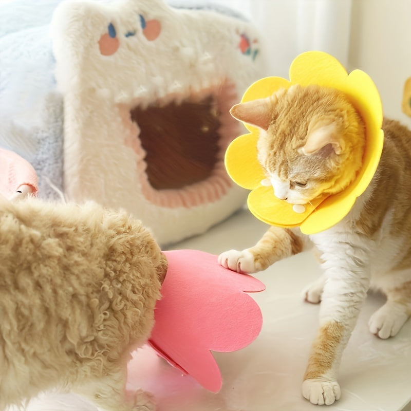 Sunflower-Shaped Cat Recovery Collar Adjustable Post-Surgery Wound Healing Cone
