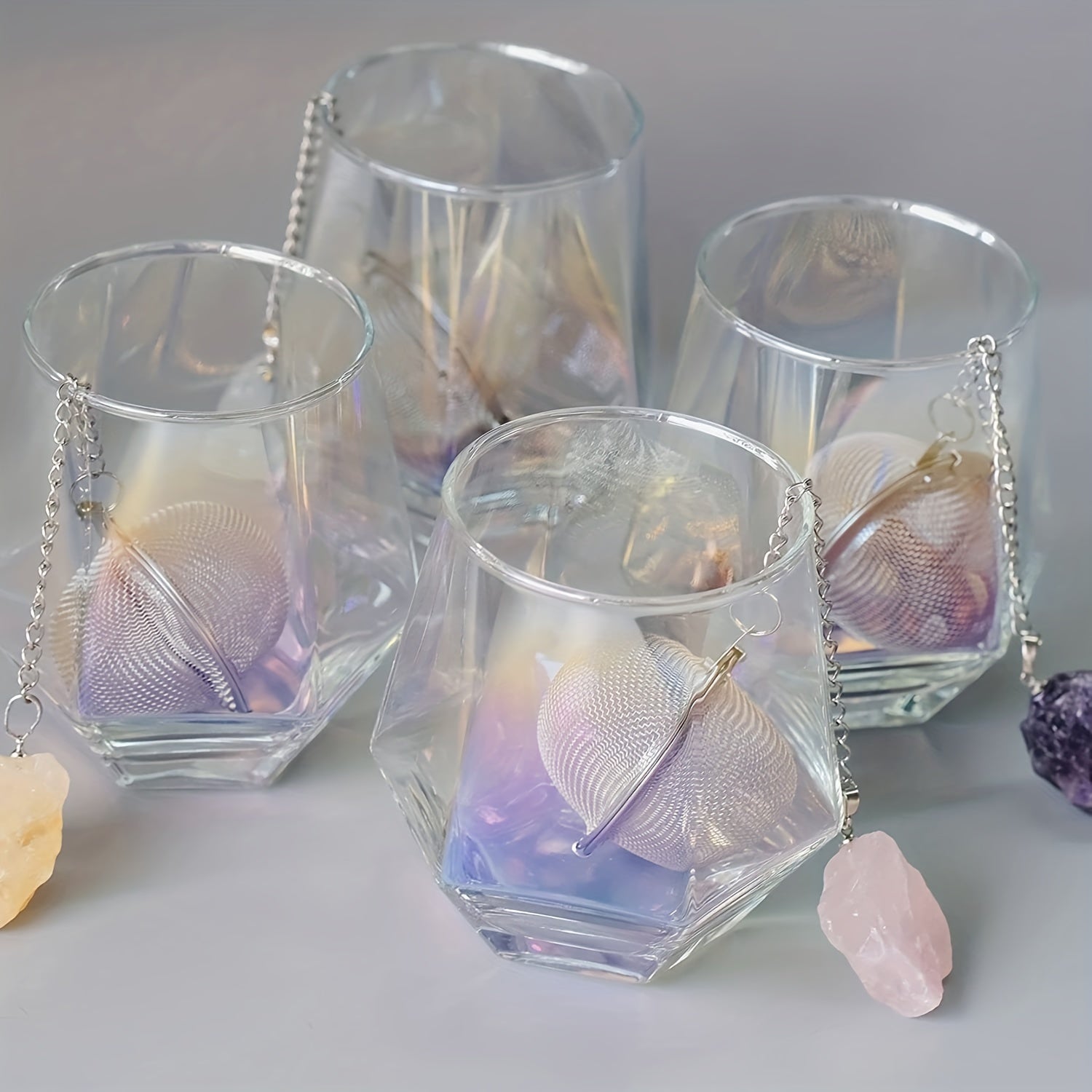 Stainless Steel Tea Filter Maker with Natural Crystal Stone
