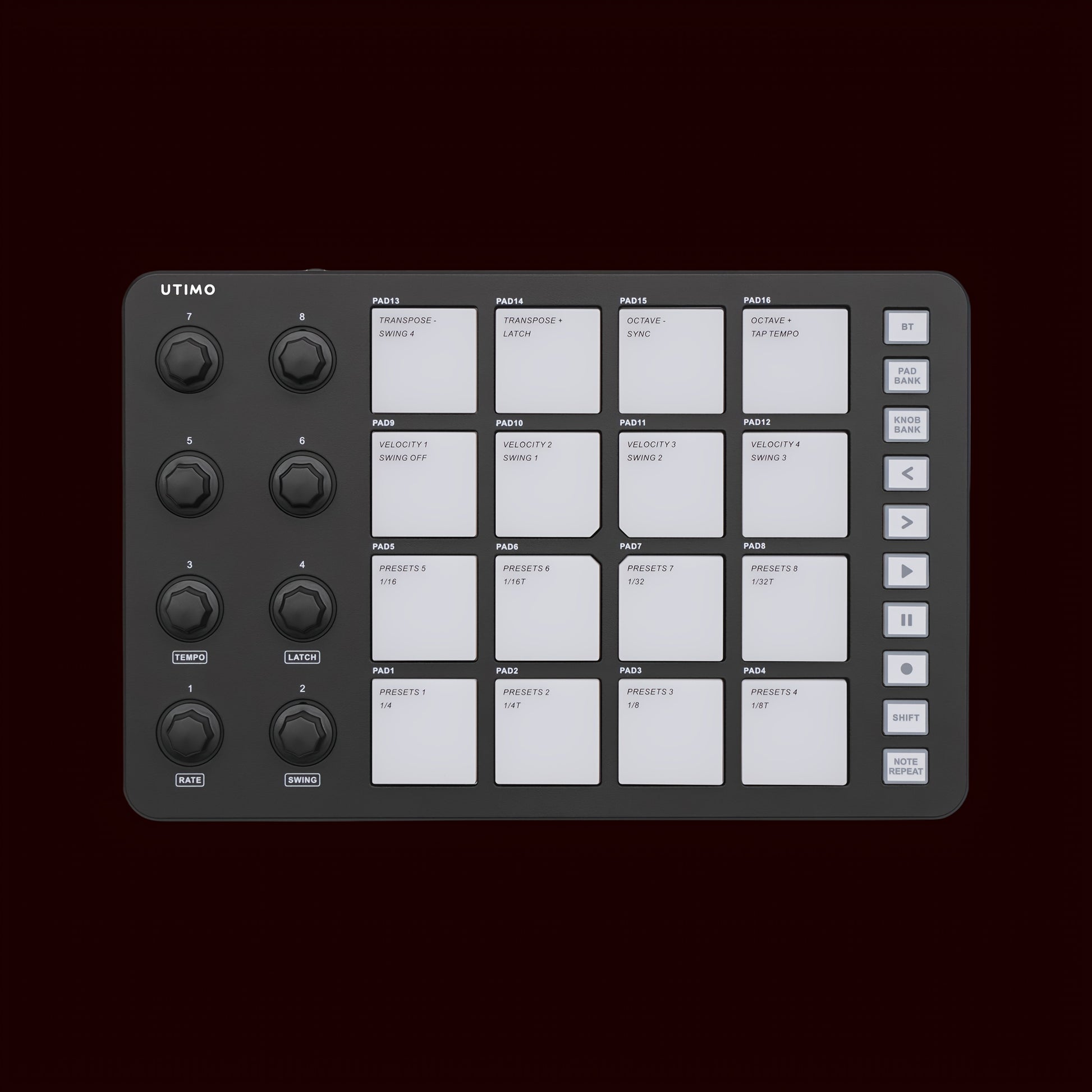 Wireless MIDI Controller with RGB Drum Pads Touch Feedback and Built-in Battery