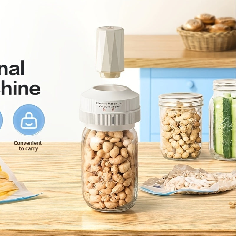 Electric Mason Jar Vacuum Sealer Kit with 10 Lids and Opener for Food Preservation