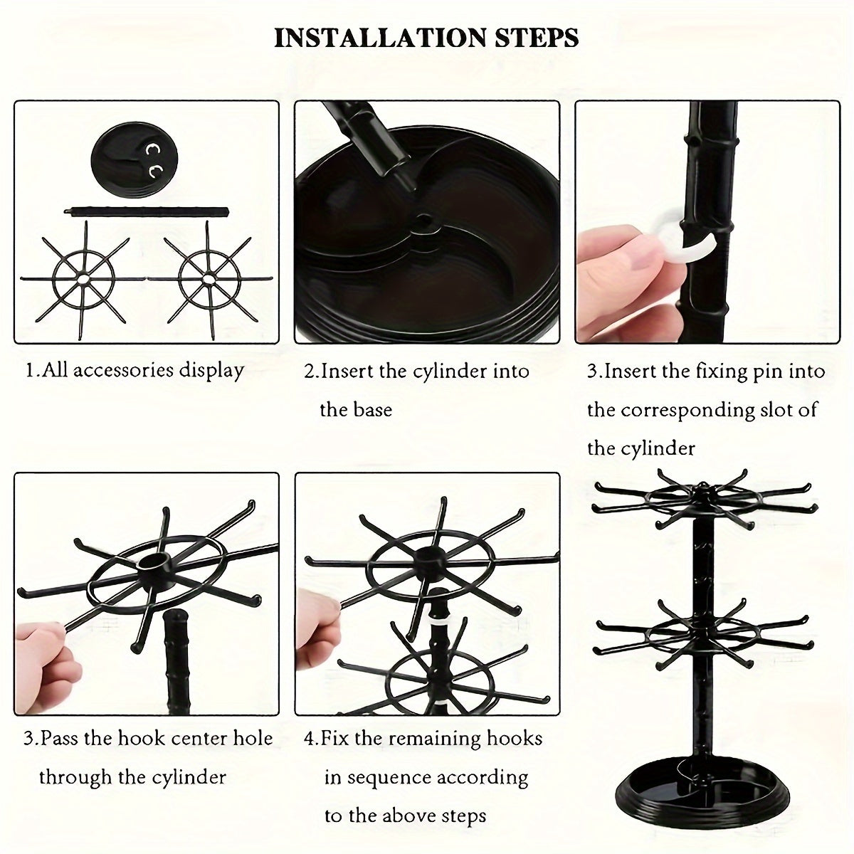2-Layer Rotatable Storage Rack with 16 Hooks for Keys Jewelry and Accessories