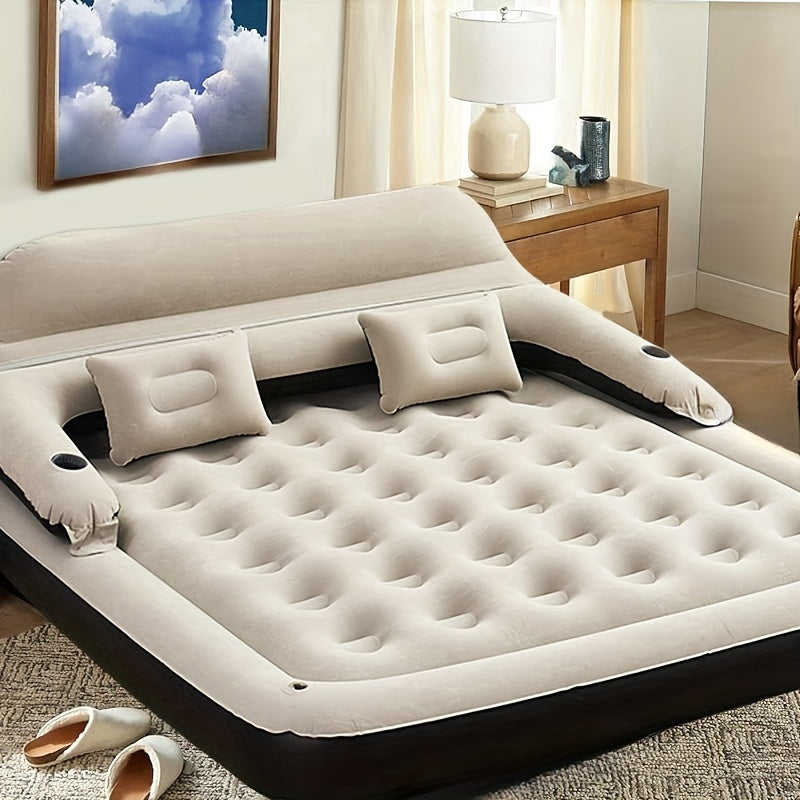 Inflatable Air Mattress with Headboard, Flocked Top, No Electric Pump