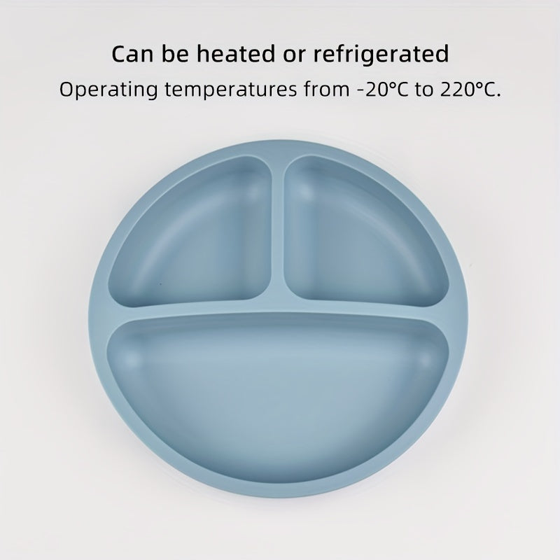 Three-Compartment Silicone Dinner Plate Soft Durable High-Temperature Resistant for Training