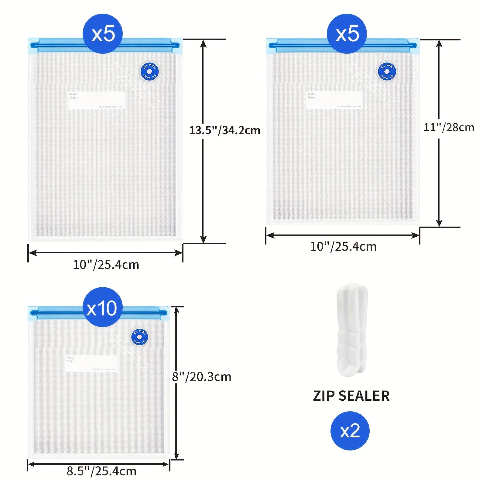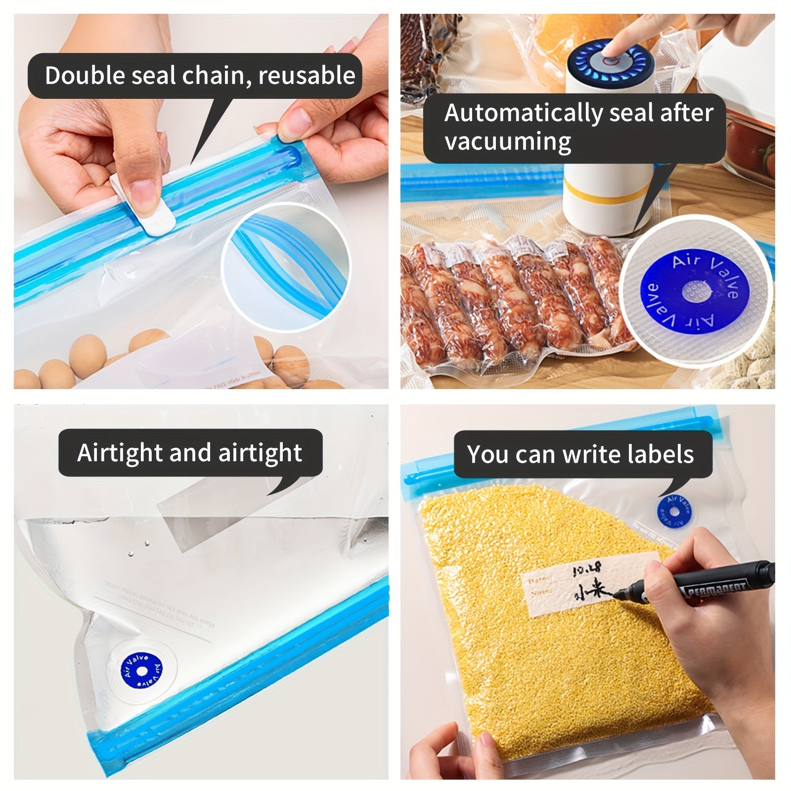 Set of 14 Reusable Food Vacuum Storage Bags in 3 Sizes for Meal Prep