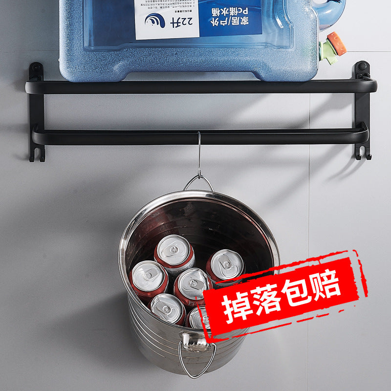 Space Aluminum Double-Layer Bathroom Towel Rack Punch-Free Black Wall Mount